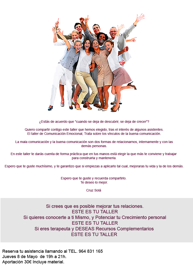 Si crees que es posible mejorar tus relaciones y quieres conocerte a tí mismo y potenciar tu crecimiento personal… este es tu taller!